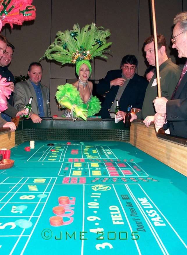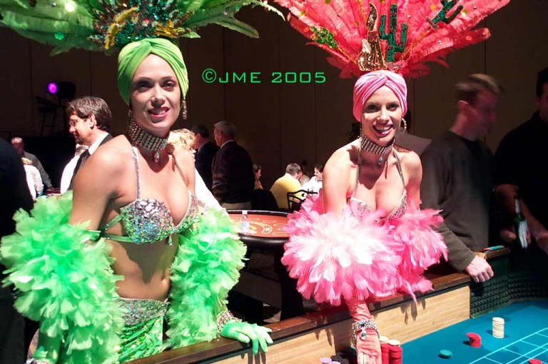 Not your typical welcome night event, Planet Vegas is a perfect opening night event to entertain your guests all evening. Stunning showgirls welcome guests while a cool band plays jazz, show tunes and pop music. Live table games with friendly dealers teach the basic strategies of blackjack, roulette and craps, poker and money management. Celebrity Look-alikes are likely to drop in to mix and mingle with guests and pose for photo ops.